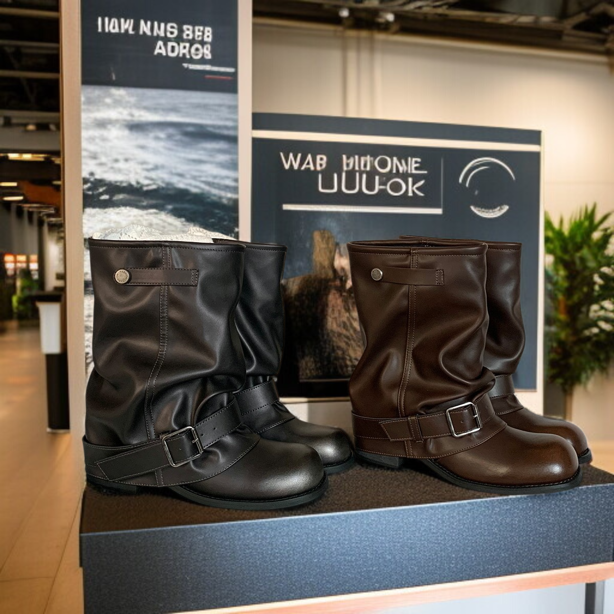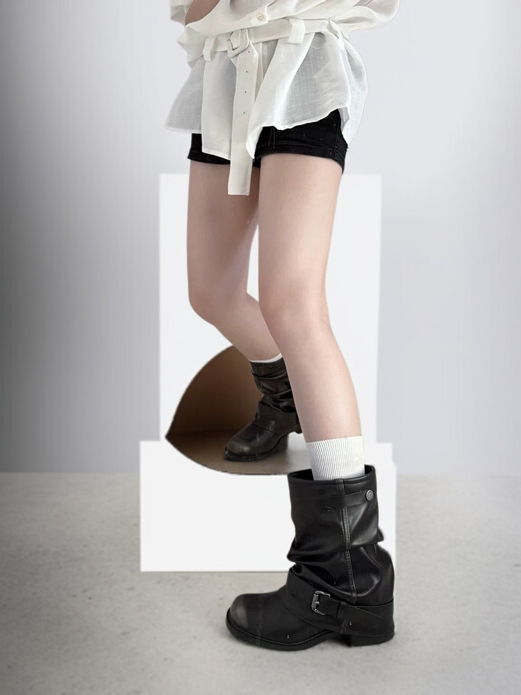 2025新作プリーツパイルバックルウエスタンショートブーツ