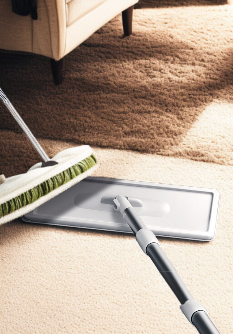 ● フラット形状のモップヘッドが隅々までしっかり届き、家具の下や角も無理なくきれいに仕上げます。