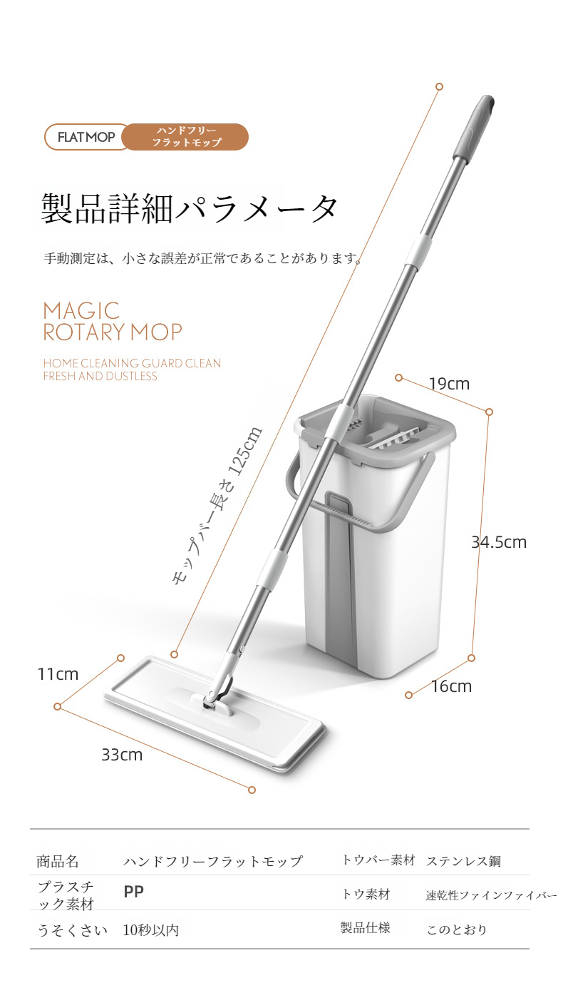 家庭用ハンドフリーフラットモップ全体画像